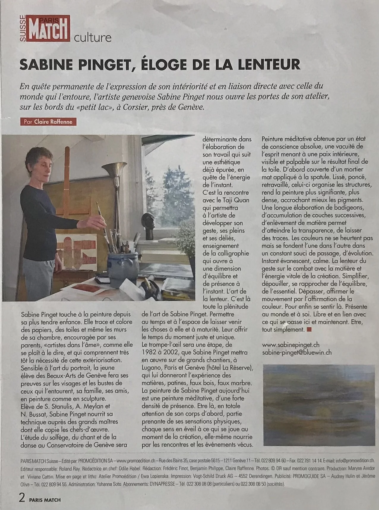 Vient ensuite la découverte de la calligraphie chinoise, en 1988, qui développe son geste de peintre. Elle approfondit la notion d’équilibre et la maîtrise de l’énergie dans son processus de création.